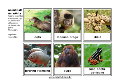 Se você quer complementar o material, confira nosso post com um conjunto de desenhos de animais da Amazônia para imprimir e pintar!