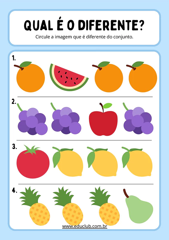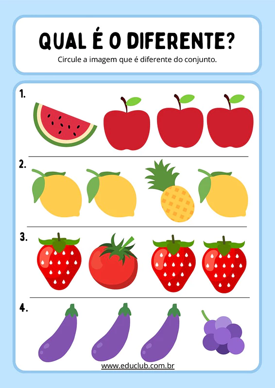 Atividade ache o intruso para Educação Infantil