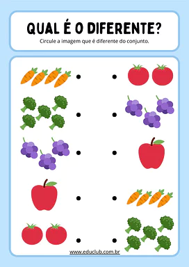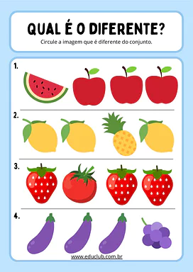 A atividade ache o intruso para Educação Infantil é um recurso lúdico e eficaz para desenvolver a percepção visual e a capacidade de observação em crianças pequenas. Este material desafia os pequenos a identificar o elemento diferente em um conjunto de imagens, estimulando o raciocínio lógico e a atenção aos detalhes.