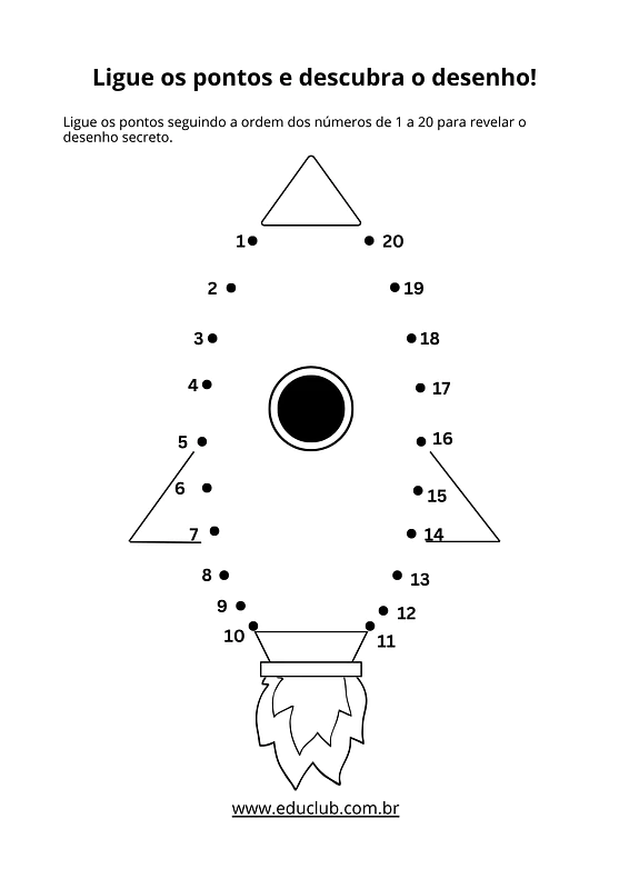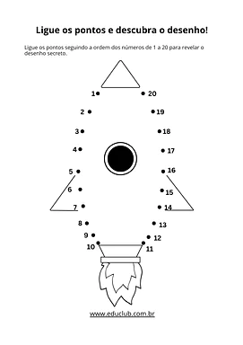 • Ordem numérica: Exercício de "ligue os pontos" de 1 a 20 para revelar uma figura, reforçando a ordem sequencial.