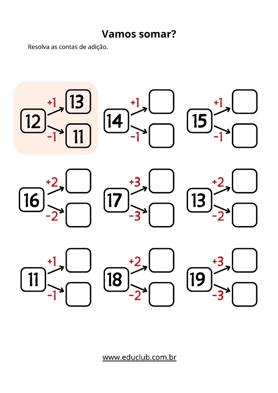 EF01MA06: Construir fatos básicos da adição e utilizá-los em procedimentos de cálculo para resolver problemas.