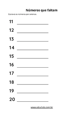 Atividade com números até 20 para imprimir