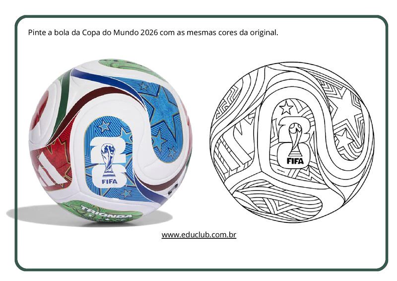 A Copa do Mundo é um evento que une nações e desperta o interesse de crianças e jovens em todo o mundo. Esta atividade propõe um mergulho na identidade visual da Copa do Mundo de 2026, focando especificamente em um dos elementos mais icônicos do torneio: a bola oficial. Ao trabalhar com a representação gráfica da bola, o aluno é estimulado a observar detalhes, padrões e cores, conectando a paixão pelo esporte ao desenvolvimento de habilidades artísticas e de observação.
