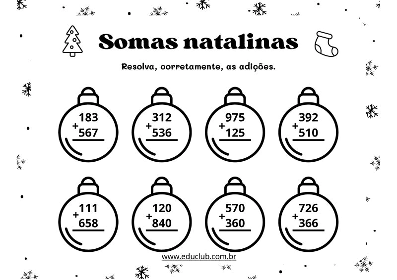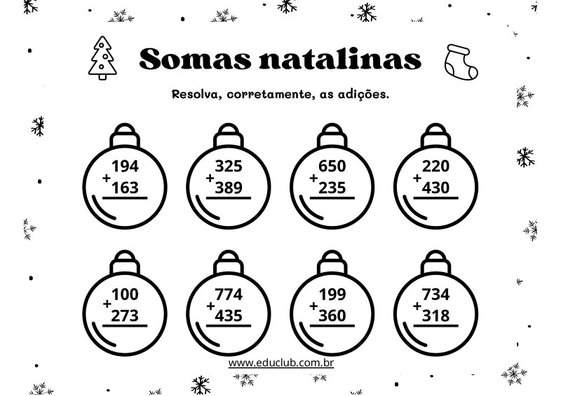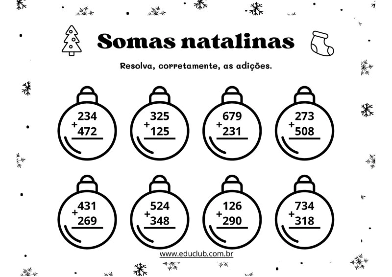 O principal objetivo da Atividade de adição do Natal é aprimorar as habilidades dos alunos em adição de números inteiros, com e sem reagrupamento. Além disso, busca-se estimular o raciocínio lógico-matemático e a concentração, utilizando um contexto temático que desperta o interesse e a participação ativa dos estudantes.