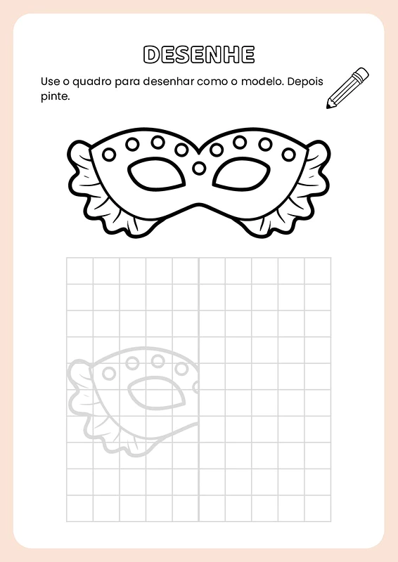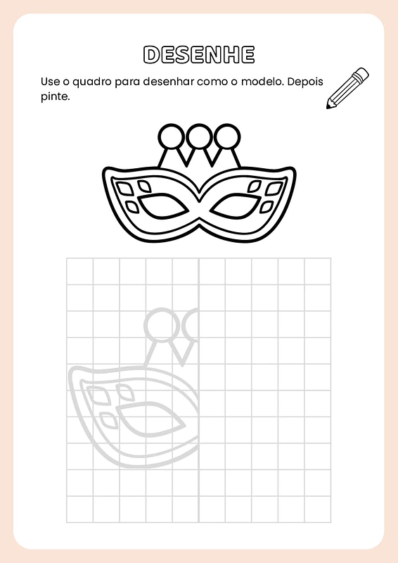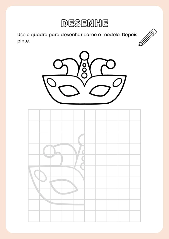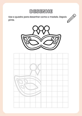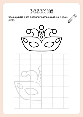 Nesta atividade de simetria com temática do carnaval, você encontrará diversas páginas com modelos de desenhos relacionados ao carnaval. Cada modelo apresenta uma metade de uma imagem, e os alunos deverão completar a outra metade, garantindo a simetria, e depois colorir as ilustrações.