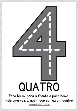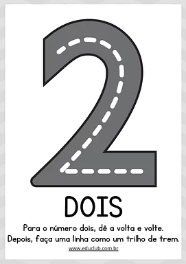- Texto do traçado: Uma pequena rima divertida que descreve, de forma poética, como desenhar cada número. Ex: para o '2', "Para o número dois, dê a volta e volte. Depois, faça uma linha como um trilho de trem".