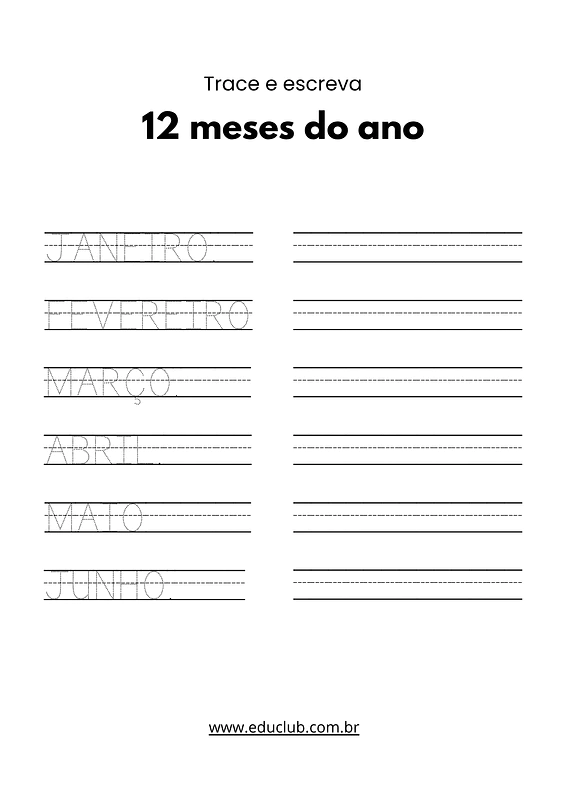 Pensando nisso, desenvolvemos uma atividade de traçar e escrever os meses do ano, um recurso limpo e objetivo, focado em ajudar a criança a ganhar confiança e fluidez no traçado das letras enquanto memoriza os 12 meses.