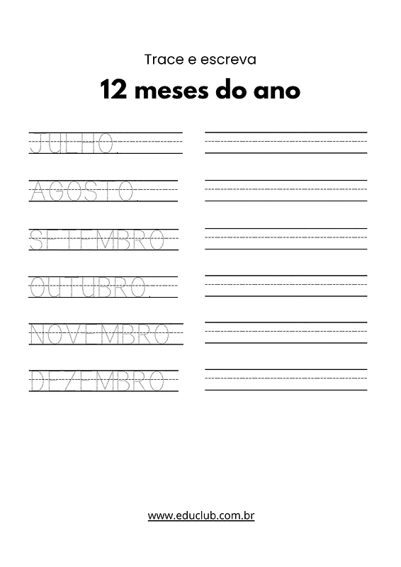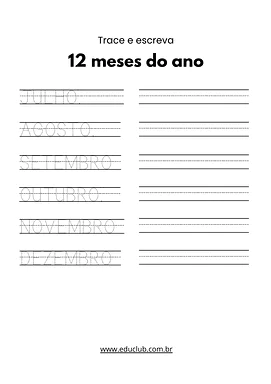 - A segunda linha é um espaço em branco, para que a criança, após o treino, possa escrever o nome do mês de forma autônoma.