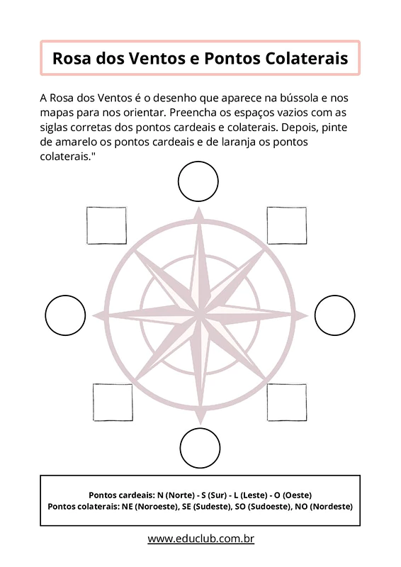 Atividade sobre a Rosa dos Ventos e os pontos colaterais