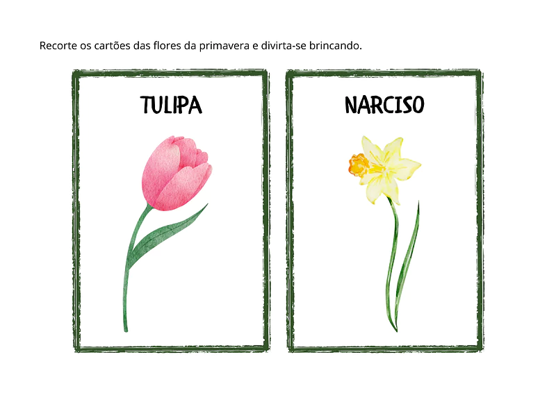 A primavera é a estação em que a natureza nos presenteia com seu mais belo espetáculo: o desabrochar das flores. Para as crianças, aprender a nomear e a reconhecer essa diversidade é uma forma de se conectar com os ciclos da natureza, aguçar a observação e enriquecer o vocabulário. Para transformar esse aprendizado em uma brincadeira, criamos um conjunto completo de cartões com as Flores da Primavera. Este material, pronto para imprimir e recortar, é a ferramenta perfeita para jogos, atividades de nomenclatura e projetos artísticos que celebram a estação mais colorida do ano.