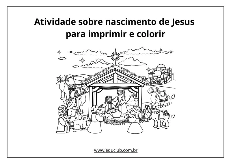 A Atividade sobre nascimento de Jesus para imprimir é um recurso encantador e educativo, perfeito para introduzir ou reforçar a história do Natal de forma lúdica e interativa. Este material foi cuidadosamente elaborado para engajar os pequenos, permitindo que explorem a narrativa do nascimento de Jesus através da arte e da criatividade.