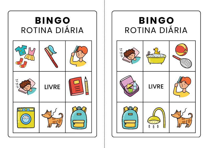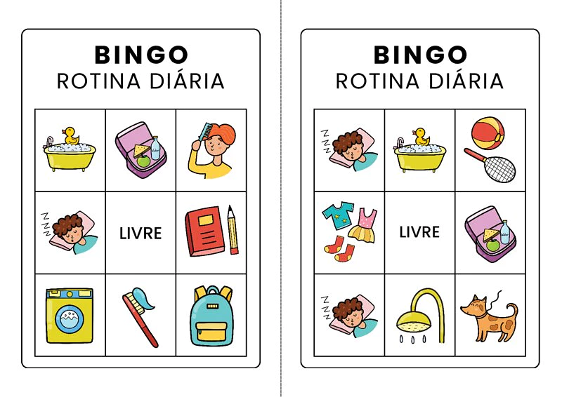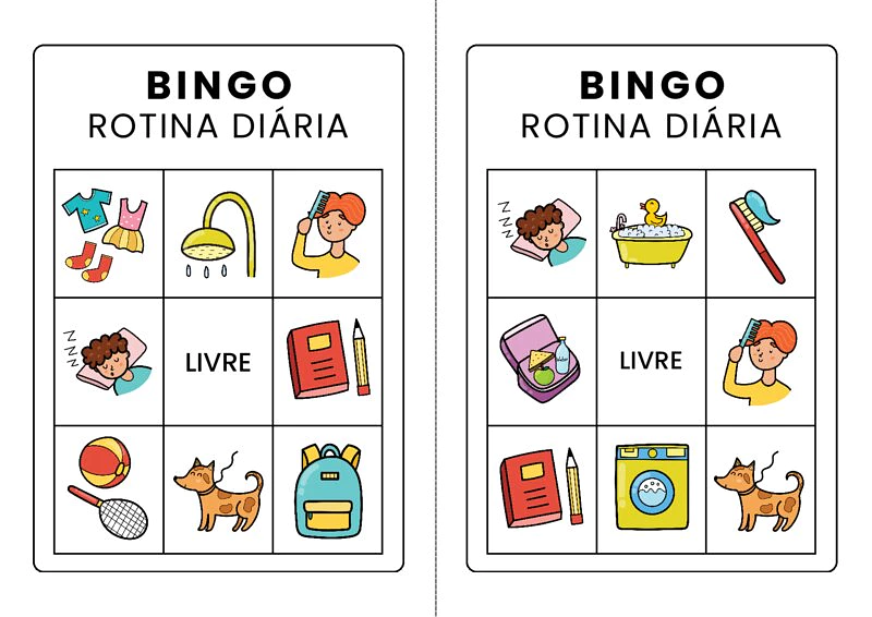 A atividade sobre rotina diária para 1º ano do fundamental é um recurso lúdico e interativo, ideal para auxiliar os alunos do 1º ano a compreenderem e organizarem suas atividades diárias. Este bingo de rotina diária torna o aprendizado sobre hábitos e responsabilidades muito mais divertido e envolvente.
