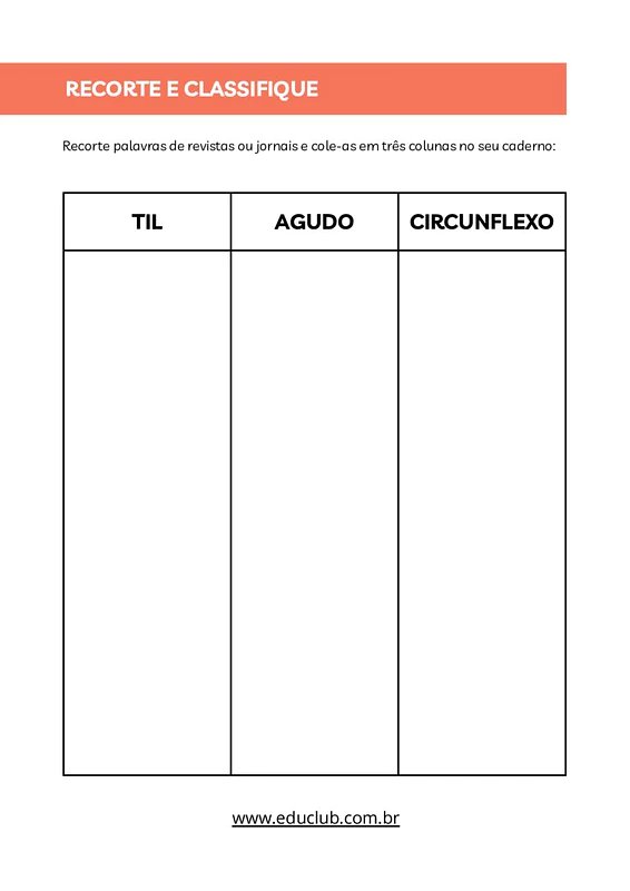 Atividades de acentuação gráfica til, agudo e circunflexo