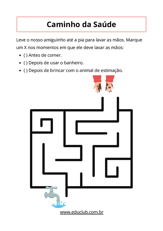 Nestas atividades de ciências sobre higiene e saúde para 1º ano, você encontrará exercícios práticos que conectam objetos de higiene a partes do corpo, um labirinto para guiar o personagem até a pia para lavar as mãos e questões de múltipla escolha para identificar bons hábitos de saúde. O material é visualmente atraente e de fácil compreensão para a faixa etária.