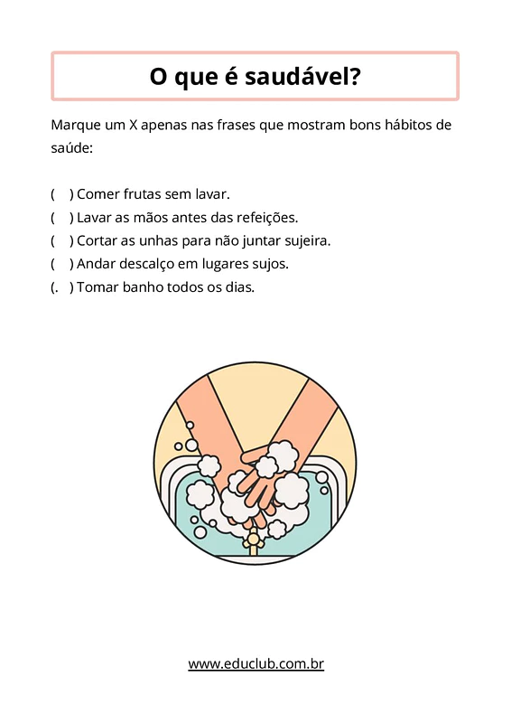 Atividades de ciências sobre higiene e saúde para 1º ano