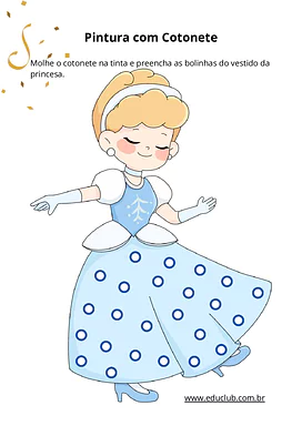 - a pintura com cotonete para preencher as bolinhas do vestido da princesa.