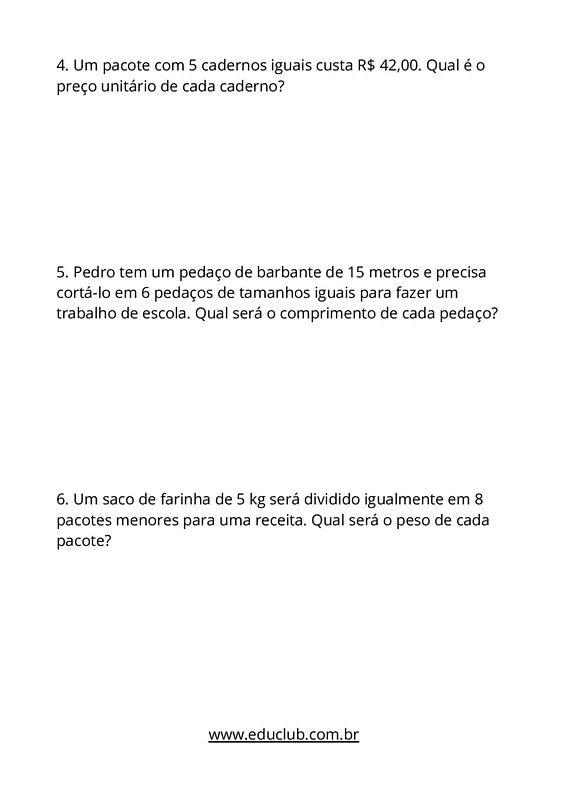 Explore o universo dos números decimais com as Atividades de divisão com vírgula para 5º ano fundamental, um recurso didático essencial para consolidar o aprendizado da divisão. Este material foi cuidadosamente elaborado para desafiar os alunos a aplicarem conceitos matemáticos em situações do cotidiano, tornando o aprendizado mais significativo e envolvente.