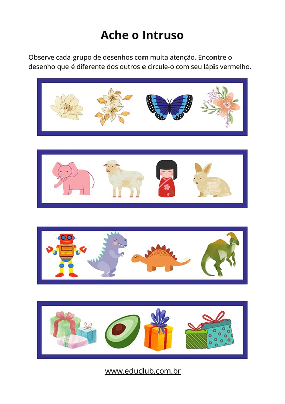 - "Ache o Intruso": desafia a criança a identificar diferenças