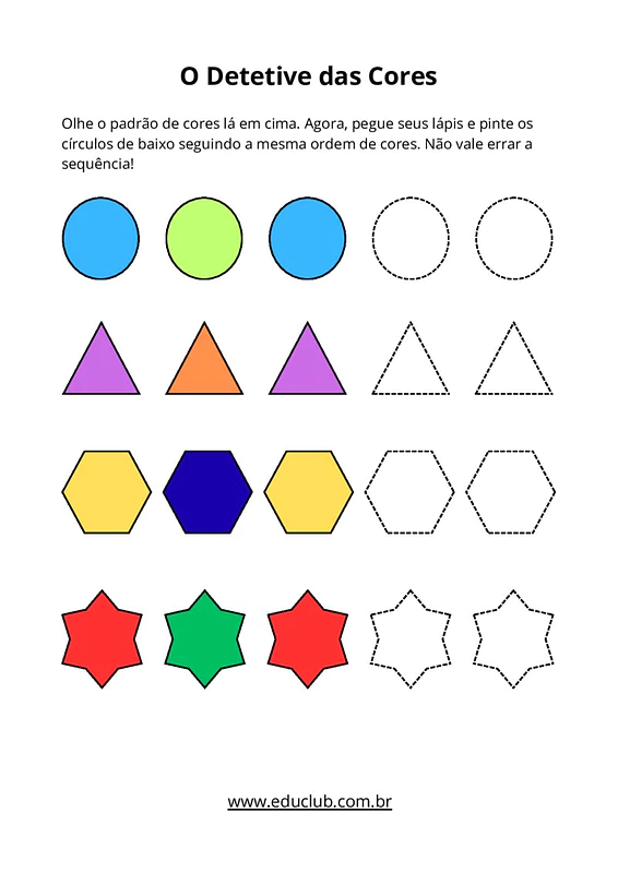 - "O Detetive das Cores": focado em padrões de cores e sequências
