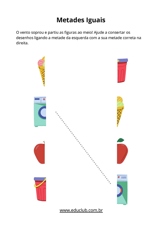 - "Metades Iguais": que estimula a percepção de simetria e completude de figuras.