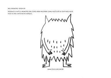 Meu monstro interior: A criança desenha e pinta o monstro para mostrar como está se sentindo no dia. A atividade também inclui um espaço para descrever o motivo desse sentimento.