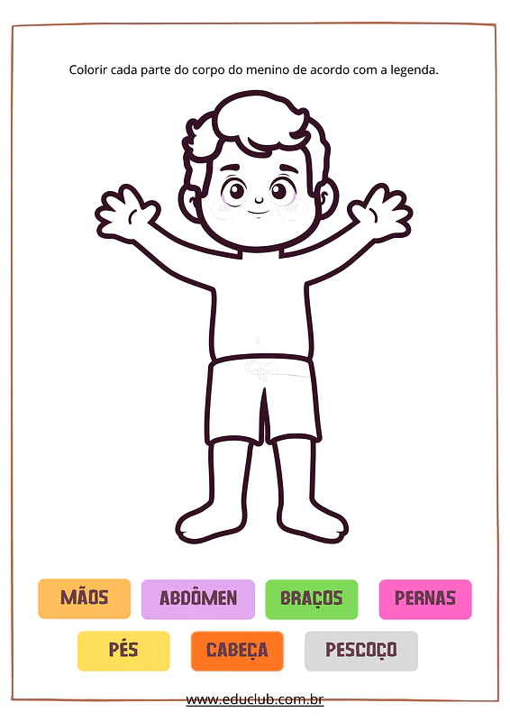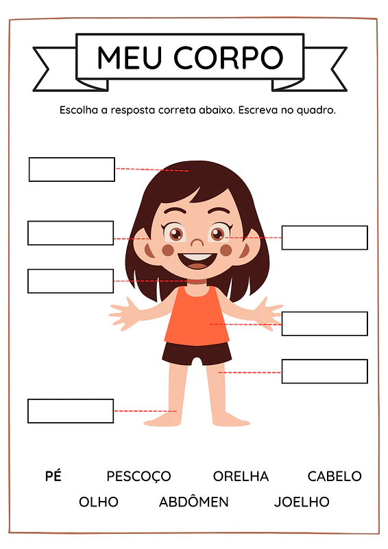 Este pacote de atividades foi desenvolvido com o objetivo de auxiliar as crianças a identificar, nomear, localizar e representar as diferentes partes do corpo e do rosto. O material é diversificado e permite trabalhar habilidades como a escrita, a leitura, a coordenação motora fina e a consciência corporal. O conteúdo inclui uma variedade de exercícios, como: ligar nomes às partes do rosto, caça-palavras, atividades de colorir segundo legendas, exercícios para nomear as partes do corpo e do rosto em diagramas, e uma atividade de desenho livre para que a criança represente o corpo humano e nomeie suas partes.
