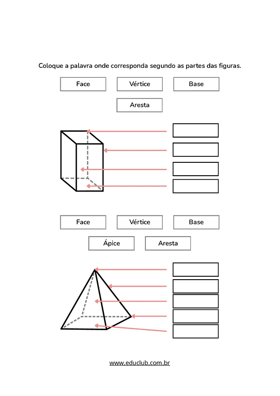 Atividades sobre prismas e pirâmides para 4º e 5º anos