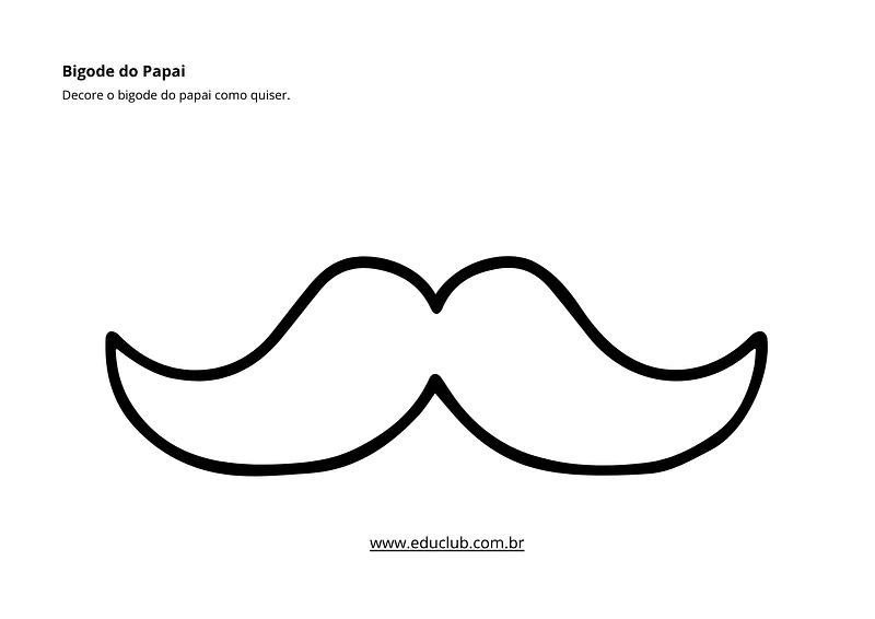 Bigode sensorial: Explore o sentido do tato! Use o molde impresso como base para uma colagem. Ofereça à criança uma variedade de materiais com diferentes texturas para ela colar sobre o bigode: bolinhas de algodão (macio), lixa fina (áspero), fios de lã (fofo), grãos de feijão ou arroz (granulado), ou pedacinhos de papel de seda amassado.