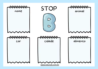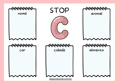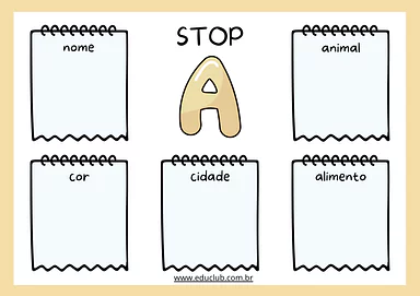 Esqueça as atividades monótonas! Com o Stop, as crianças desenvolvem o vocabulário, treinam a ortografia e aprimoram o raciocínio rápido, tudo isso enquanto se divertem em família ou com os amigos.