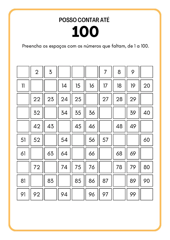 - Sequência Numérica: Tabelas e desafios para preencher números faltantes, reforçando a ordem numérica.