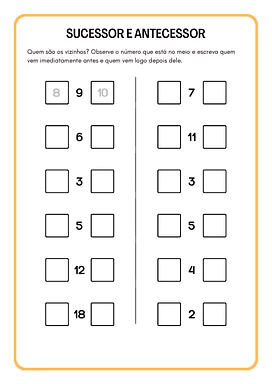 - Noções de Ordem e Comparação: Compreender conceitos de "maior", "menor", "sucessor" e "antecessor".