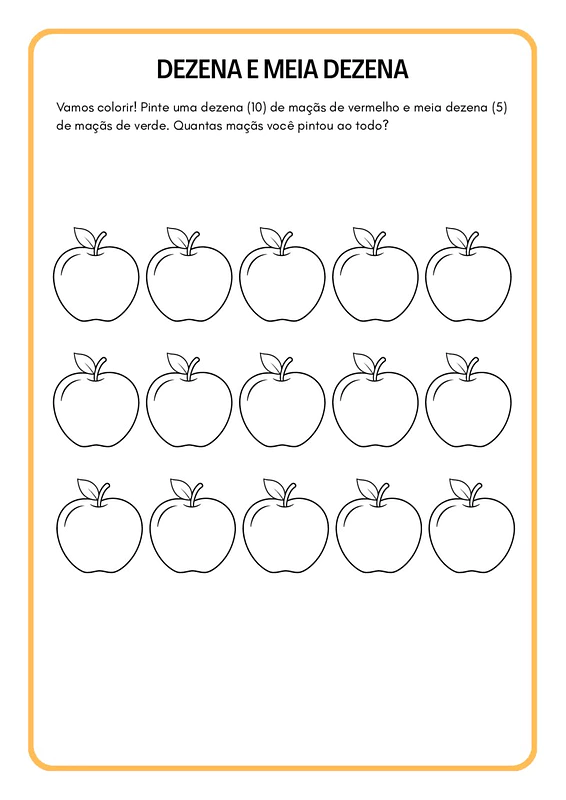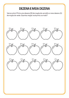 - Contagem e Agrupamento: Exercícios com desenhos (como maçãs e flores) para contar e registrar a quantidade.