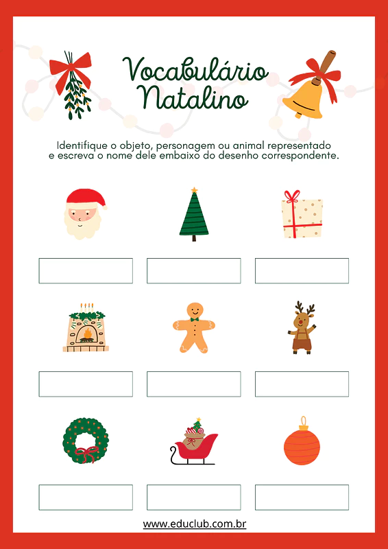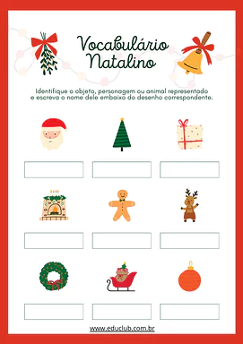- Vocabulário natalino: Para identificar e escrever o nome de figuras.