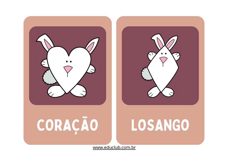 Os cartões das formas geométricas do coelho da Páscoa podem ser utilizados em atividades de identificação e classificação de formas, jogos de memória ou como apoio visual em aulas sobre geometria. Incentive as crianças a colorir os cartões, criar histórias com as formas ou até mesmo utilizá-los em um caça ao tesouro temático da Páscoa.