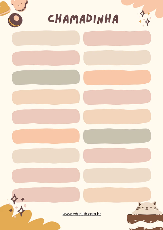 - Reconhecimento do nome próprio: A chamadinha é uma ferramenta fundamental para que a criança aprenda a identificar e, posteriormente, a escrever seu próprio nome.