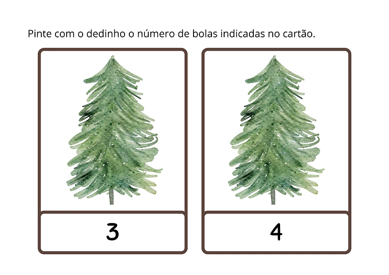 - Preparação: Imprima os cartões de atividade. Para uma maior durabilidade, especialmente se for usar como um recurso reutilizável em "estações de aprendizagem", plastifique-os. Separe tintas guache ou tintas para pintura a dedo (atóxicas), de preferência em cores natalinas como vermelho, verde, dourado e prata.