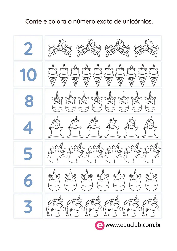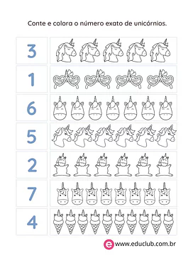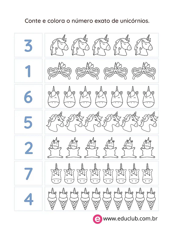 Conte e colora os unicórnios