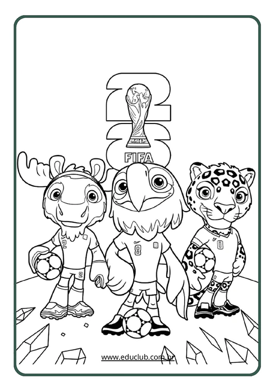 • Símbolos Oficiais: Desenhos do troféu da Copa do Mundo e do logotipo oficial de 2026.