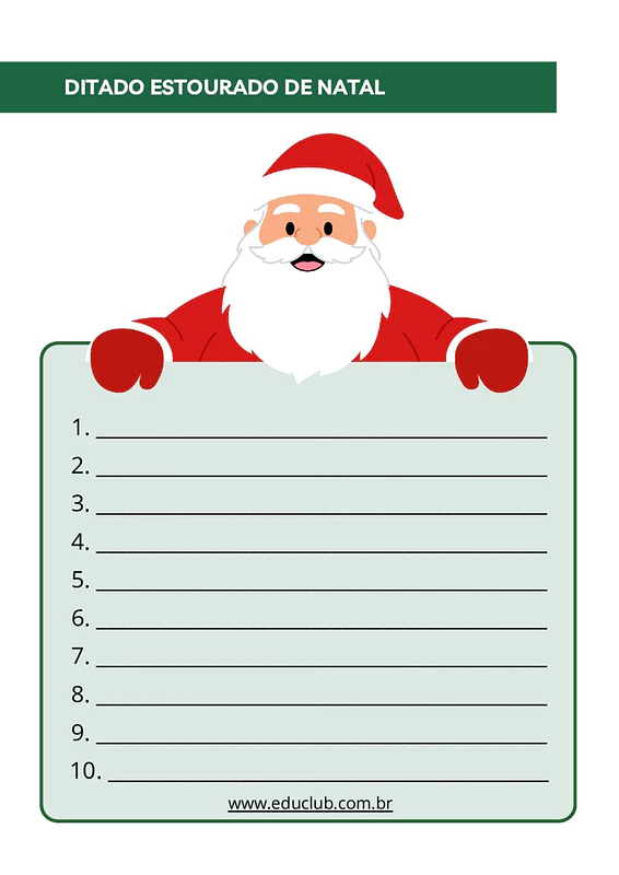 Celebre o espírito natalino enquanto aprimora as habilidades de escrita e leitura dos seus alunos com o ditado natalino de frases para 1º e 2º ano. Este material lúdico e interativo transforma a prática do ditado em uma experiência divertida e temática, ideal para engajar os pequenos no final do ano.