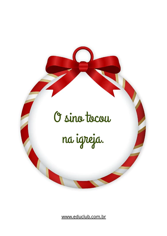 Você encontrará uma folha de ditado com espaços numerados para as frases e dez "bolas de Natal" recortáveis, cada uma contendo uma frase temática. As frases são curtas e adequadas para a faixa etária, como "O sino tocou na igreja" e "Feliz Natal para todos!".