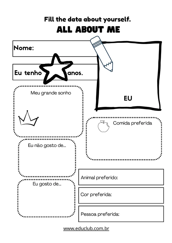 Utilize a Ficha completa do aluno para preencher nos primeiros dias de aula como uma atividade de acolhimento e apresentação. Após o preenchimento, os alunos podem compartilhar suas respostas com a turma, promovendo a interação e a construção de laços. Pode ser um excelente ponto de partida para discussões sobre individualidade e respeito às diferenças.