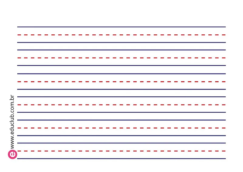 Modelo de folha com pauta para caligrafia. Ideal para crianças para que treinem a escrita durante o processo de alfabetização. Ajuda a regular o tamanho da letra, a escrever em cursiva com bastante soltura.
