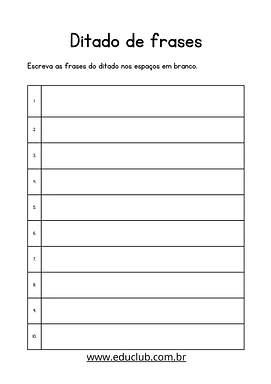 1. Prepare o Ambiente: Entregue a folha de ditado impressa para cada aluno e certifique-se de que todos estão em silêncio e prontos para começar.