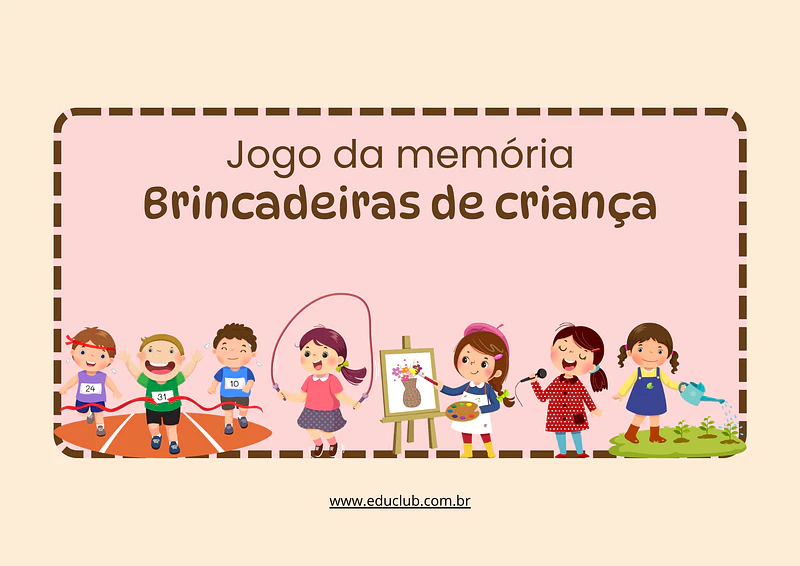 O jogo da memória das brincadeiras de criança é uma autêntica caixa de ferramentas para o desenvolvimento infantil. Ele serve como um ponto de partida para o diálogo, para o movimento, para a música e para a construção do conhecimento. É uma forma deliciosa de mostrar aos pequenos que a diversão pode estar em um simples pedaço de corda, em uma bola ou no desafio de encontrar um par, fortalecendo a imaginação e criando laços que durarão para sempre. Imprima o material e comece a brincar.