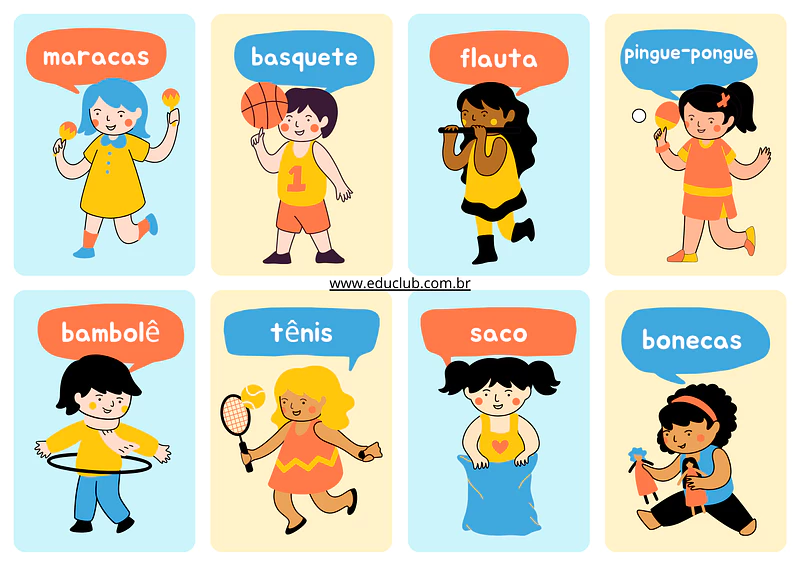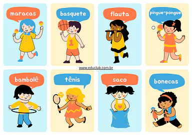 Classificação por categorias: Use as cartas para um exercício de classificação. Crie etiquetas ou cestas com categorias como: "Brinquedos que fazem música", "Brinquedos para mexer o corpo" e "Brinquedos para pensar". A tarefa da criança é observar cada carta e classificar os brinquedos de acordo com sua função principal.
