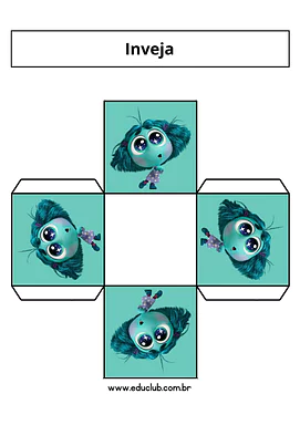 Uma das maneiras de trabalhar as emoções com as crianças é através dos filmes. A sequência cinematográfica Divertidamente é um bom exemplo. Podemos trabalhar o filme de diferentes maneiras. Aqui oferecemos a vocês uma lembrancinha com as personagens de Divertidamente 2. A criança deve recortar e colar as bordas formando uma caixinha. Dentro dela podemos pedir que escrevam pequenas mensagens contando algum momento que vivenciou a emoção. A caixinha pode ser guardada para que leia no futuro ou, simplesmente, pode dividir a emoção com um amigo ou familiar.