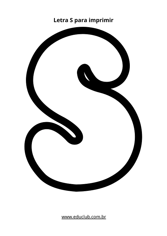 - Molde da Letra S: Uma página com a letra S em formato minúsculo, grande e com um contorno arredondado (estilo "letra bolha"), pronta para ganhar vida. A tarefa é soltar a imaginação para preencher o interior da letra com cores, texturas e colagens.