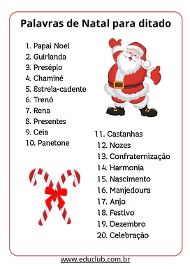A lista de palavras de Natal para ditado - vocabulário temático escolar é um recurso didático encantador e funcional, perfeito para enriquecer o vocabulário dos alunos e celebrar o espírito natalino em sala de aula. Este material oferece uma maneira divertida e eficaz de praticar a escrita e a ortografia, utilizando termos relacionados a uma das datas mais esperadas do ano.
