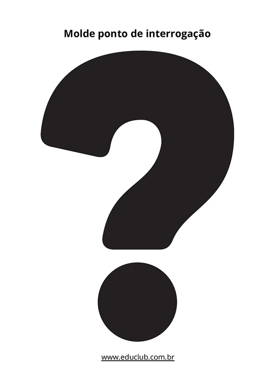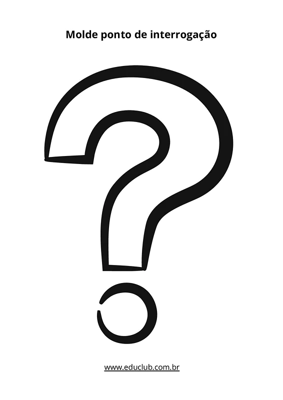 Explore a criatividade e o aprendizado com o molde do ponto de interrogação para imprimir, um recurso versátil que estimula a expressão artística e a familiarização com a pontuação. Este material é perfeito para atividades lúdicas que reforçam conceitos de forma divertida e interativa.