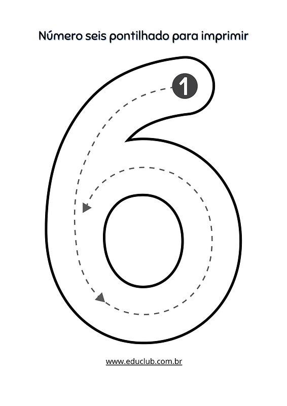 O aprendizado dos números é uma das etapas mais importantes da Educação Infantil. Para que as crianças não apenas reconheçam os algarismos, mas também aprendam a escrevê-los corretamente, as atividades de traçado são ferramentas essenciais. O objetivo deste material com o número 6 pontilhado é exatamente este: oferecer um guia claro e lúdico para que a criança pratique o movimento de escrita deste número. Este tipo de exercício é fundamental para o desenvolvimento da coordenação motora fina, da percepção visual e da noção de direcionalidade. Esta atividade específica com o número 6 complementa nossa coleção completa de números pontilhados para imprimir, garantindo que cada algarismo seja trabalhado de forma individual e focada.